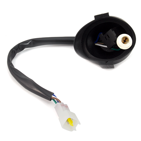 A bulb in a motorcycle is a light-emitting component used in various lighting systems, such as headlights, tail lights, or turn signals. It provides illumination for visibility and safety, typically consisting of a filament or LED elements housed within a protective casing.