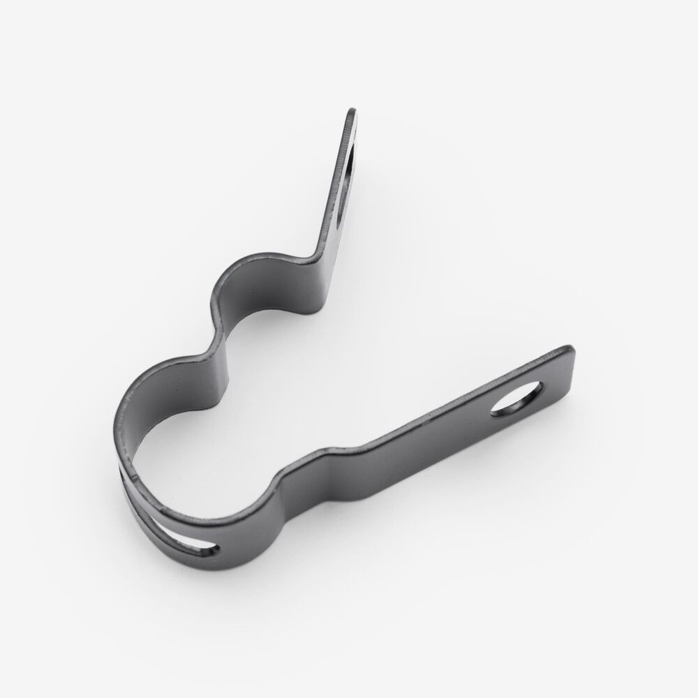A cable clamp is a fastening component used to secure and hold cables or wires in place, preventing movement and reducing strain on connections. It ensures organized routing and protection of cables, which helps to maintain electrical integrity and prevent damage or interference.