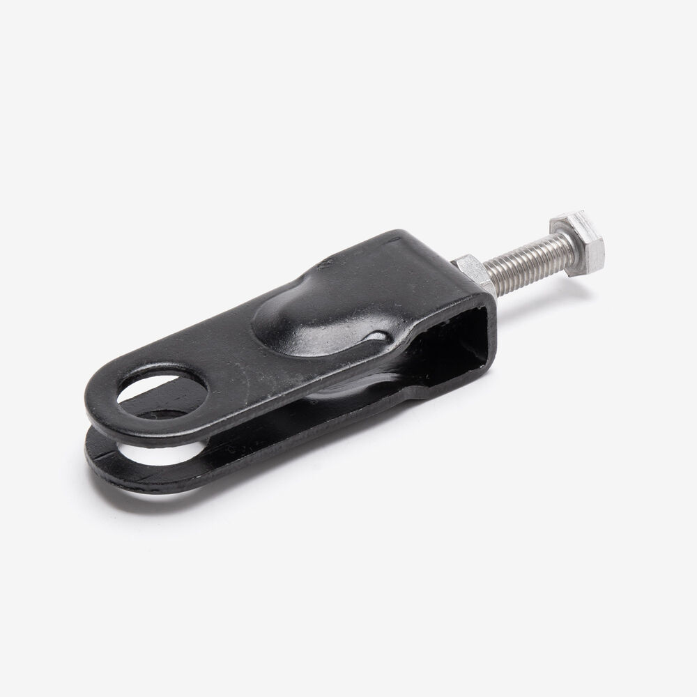 The chain adjuster in a motorcycle is a component used to modify the tension of the drive chain. It allows for precise adjustments to maintain the correct chain slack, ensuring smooth operation and reducing wear on the chain and sprockets. The adjuster typically consists of bolts or nuts and an adjustment mechanism, often integrated into the rear axle or swingarm.