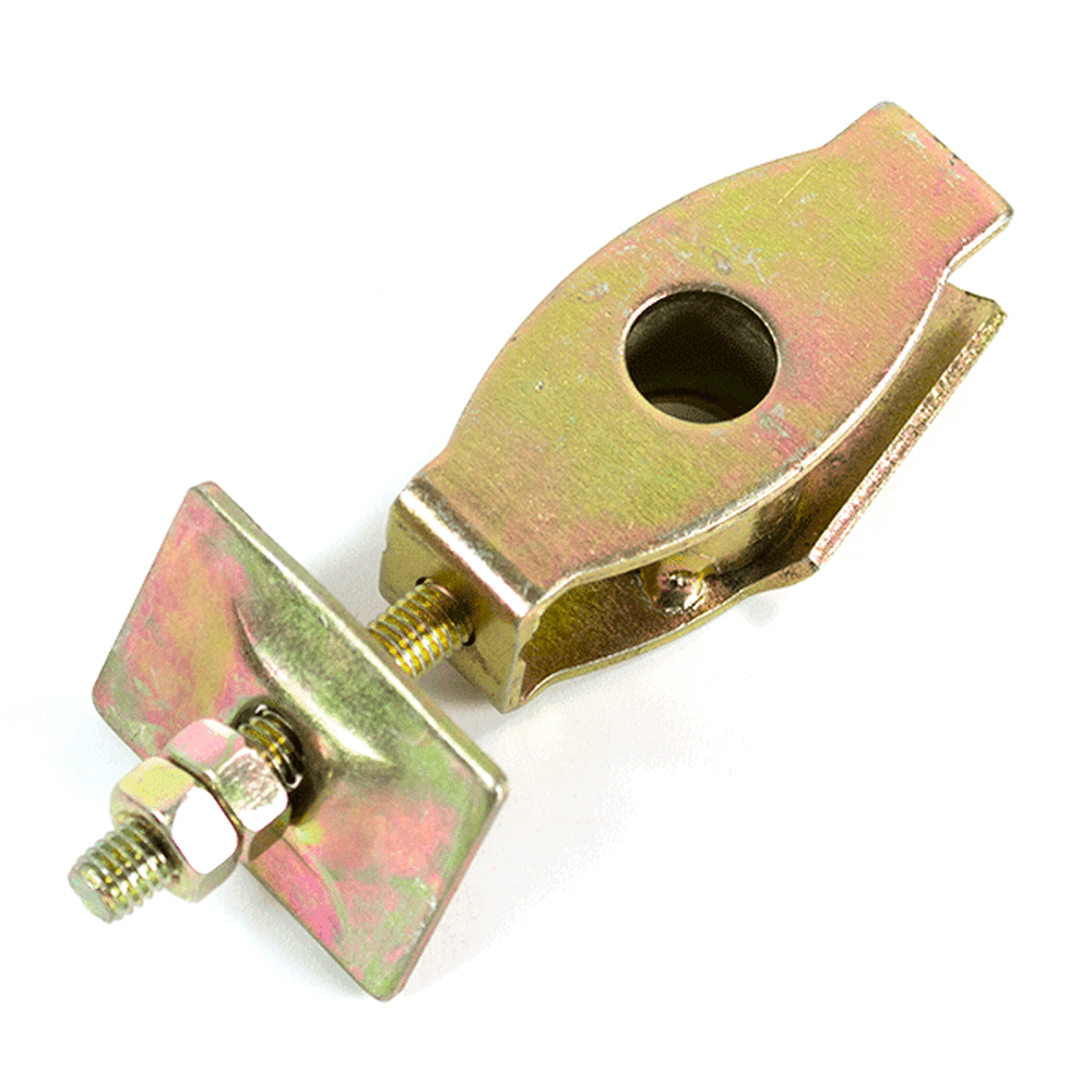 The chain adjuster in a motorcycle is a component used to modify the tension of the drive chain. It allows for precise adjustments to maintain the correct chain slack, ensuring smooth operation and reducing wear on the chain and sprockets. The adjuster typically consists of bolts or nuts and an adjustment mechanism, often integrated into the rear axle or swingarm.