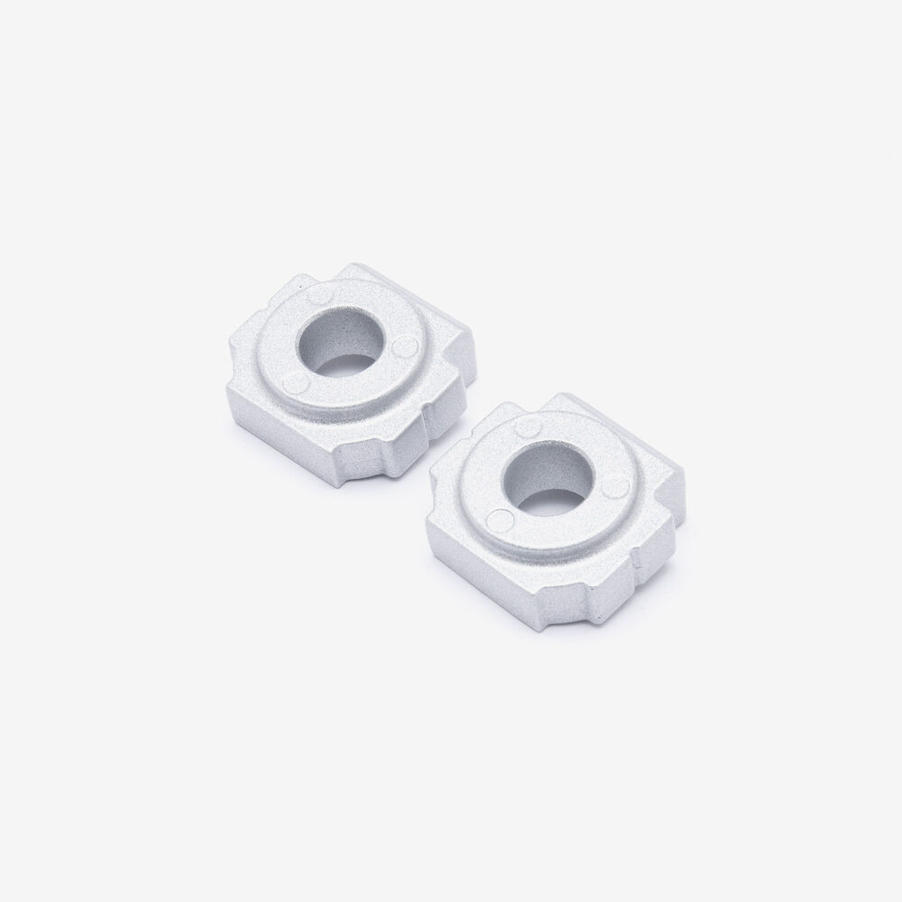 The chain adjuster in a motorcycle is a component used to modify the tension of the drive chain. It allows for precise adjustments to maintain the correct chain slack, ensuring smooth operation and reducing wear on the chain and sprockets. The adjuster typically consists of bolts or nuts and an adjustment mechanism, often integrated into the rear axle or swingarm.