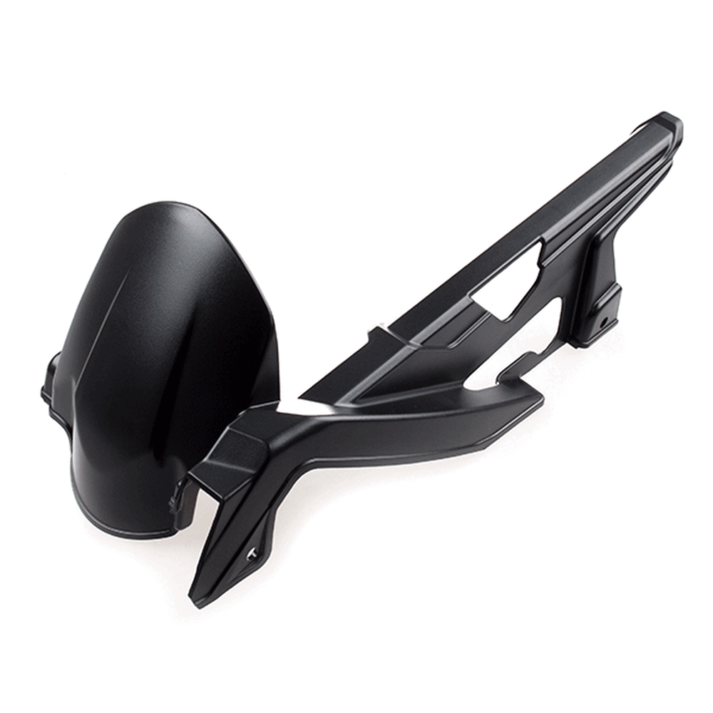 The chain guard in a motorcycle is a protective cover that shields the chain from dirt, debris, and damage. It helps to prevent accidental contact with the chain, which could cause injury or affect performance, while also keeping the chain and surrounding components clean and functioning smoothly.