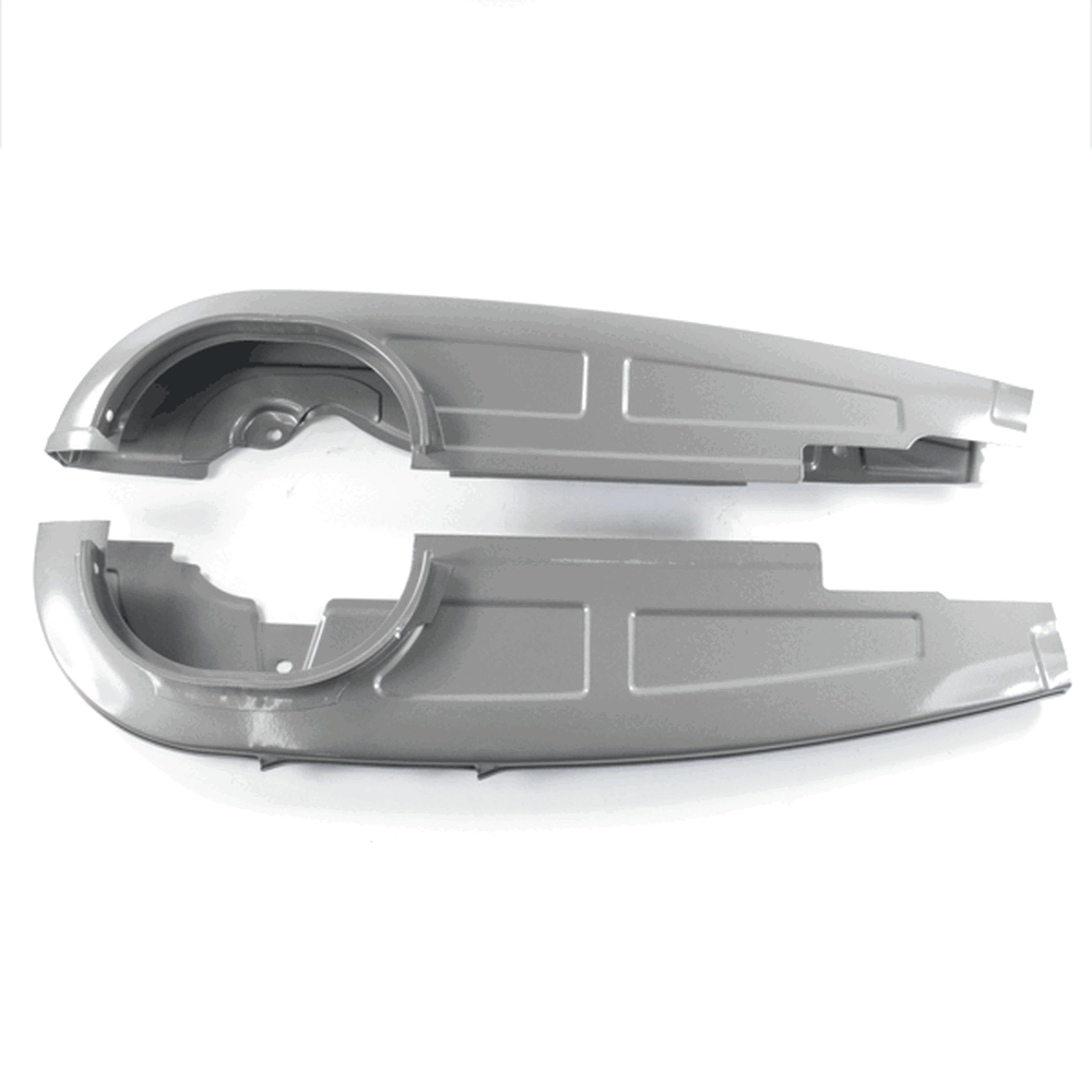 The chain guard in a motorcycle is a protective cover that shields the chain from dirt, debris, and damage. It helps to prevent accidental contact with the chain, which could cause injury or affect performance, while also keeping the chain and surrounding components clean and functioning smoothly.