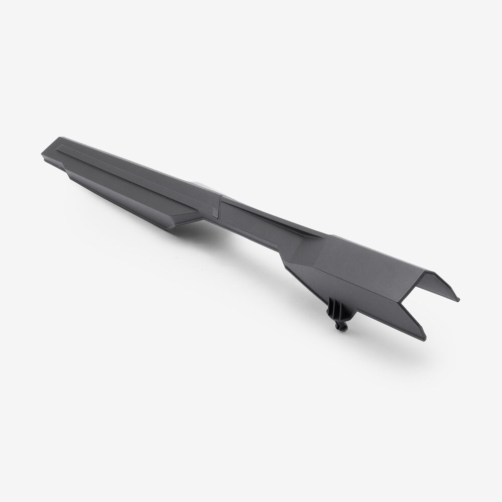 The chain guard in a motorcycle is a protective cover that shields the chain from dirt, debris, and damage. It helps to prevent accidental contact with the chain, which could cause injury or affect performance, while also keeping the chain and surrounding components clean and functioning smoothly.