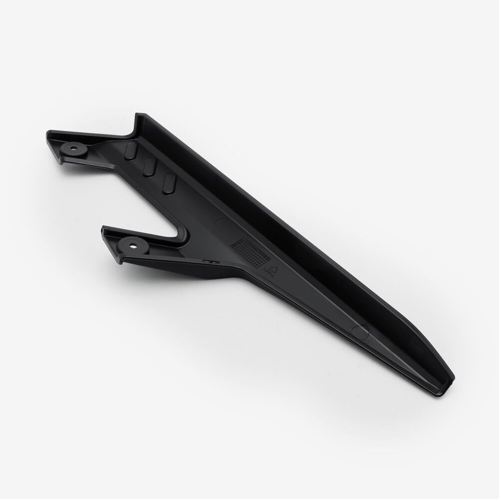 The chain guard in a motorcycle is a protective cover that shields the chain from dirt, debris, and damage. It helps to prevent accidental contact with the chain, which could cause injury or affect performance, while also keeping the chain and surrounding components clean and functioning smoothly.