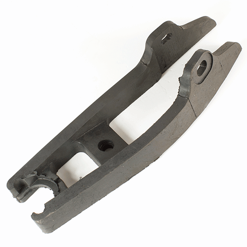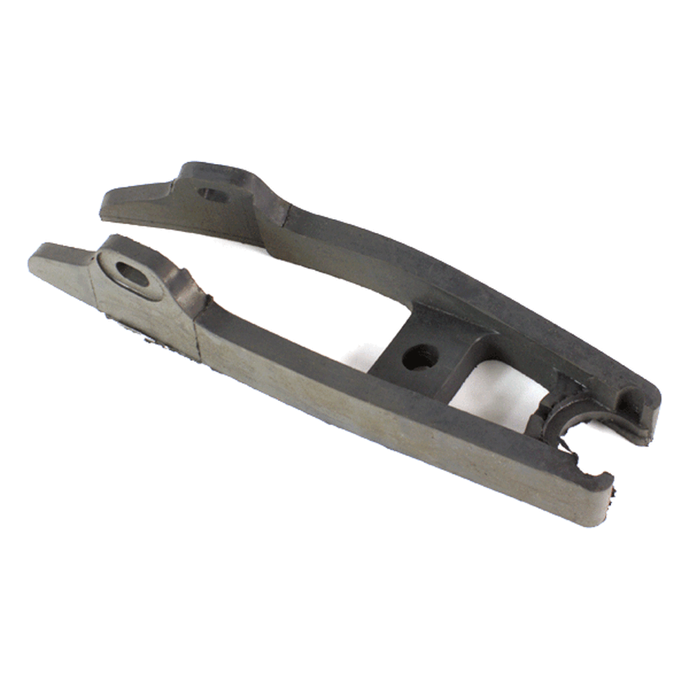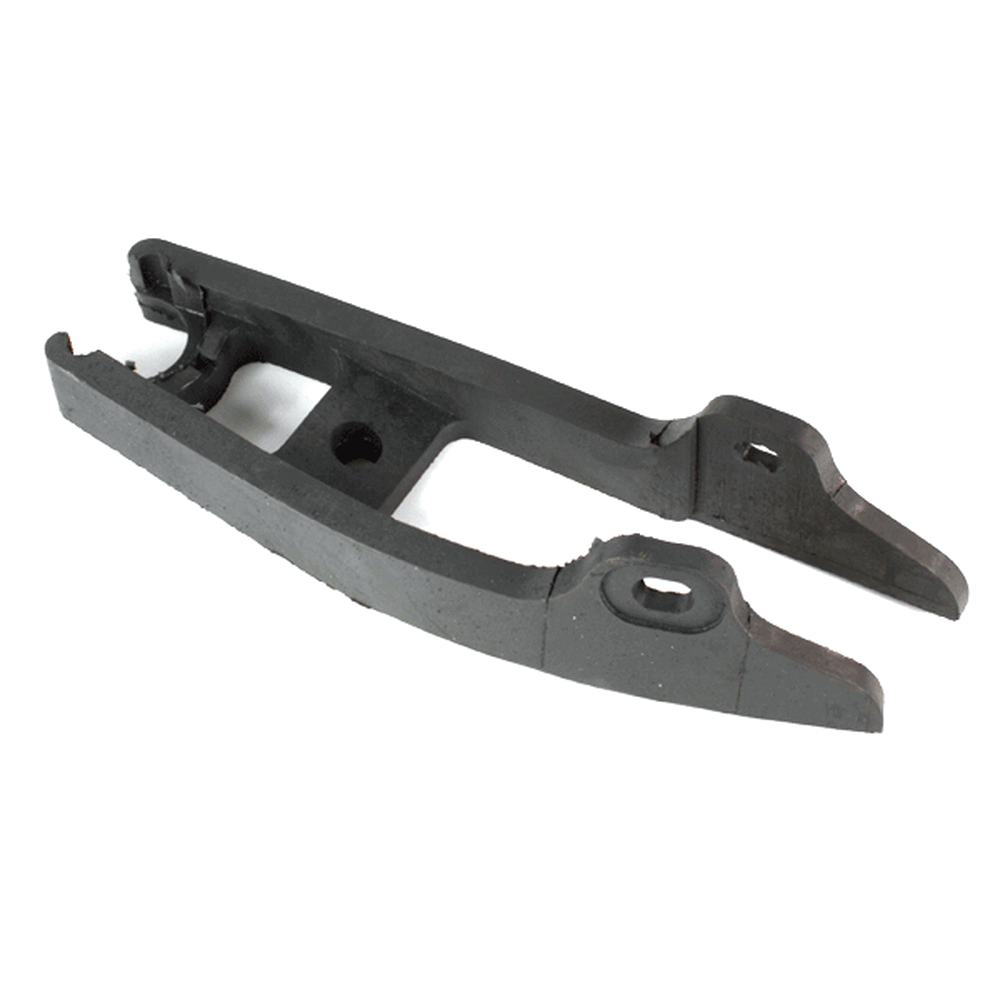 The rubber chain guide in a motorcycle is a component that directs and cushions the chain as it travels along the swingarm or frame. It reduces noise, minimizes chain wear, and prevents the chain from contacting and damaging other parts of the bike.