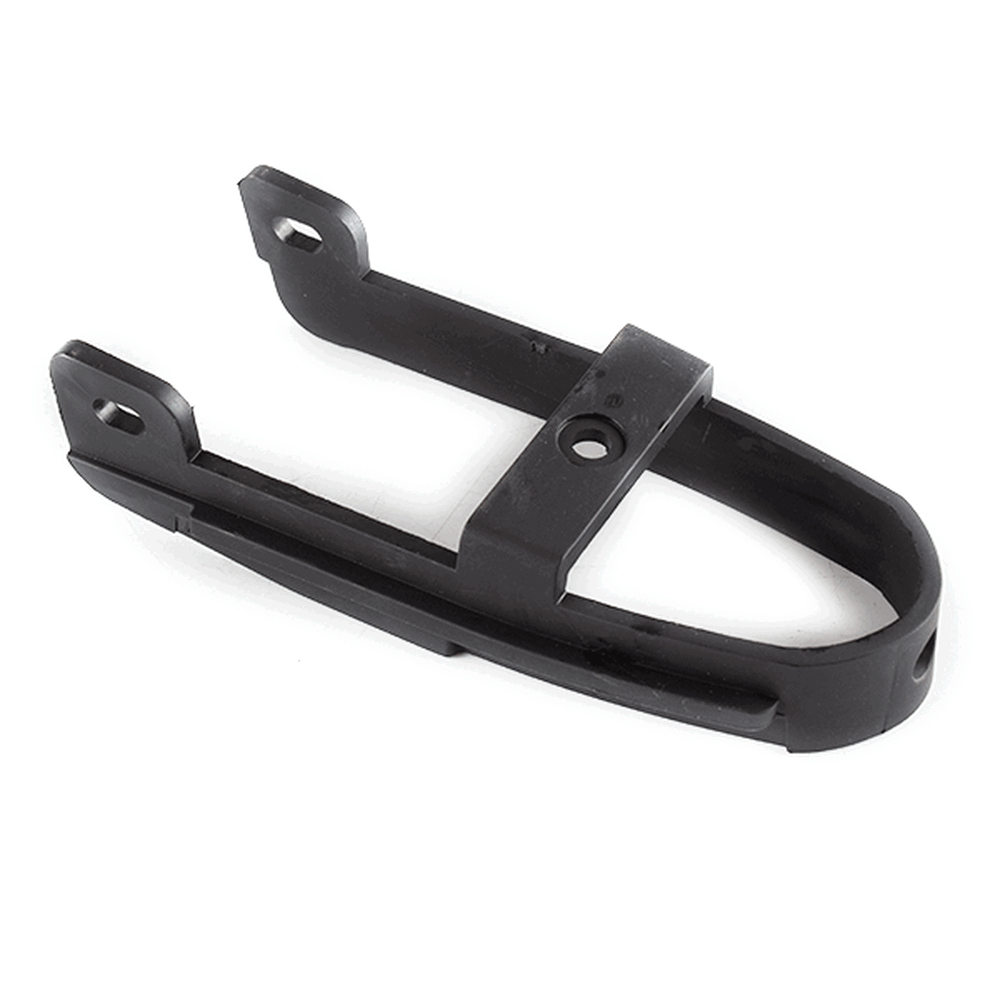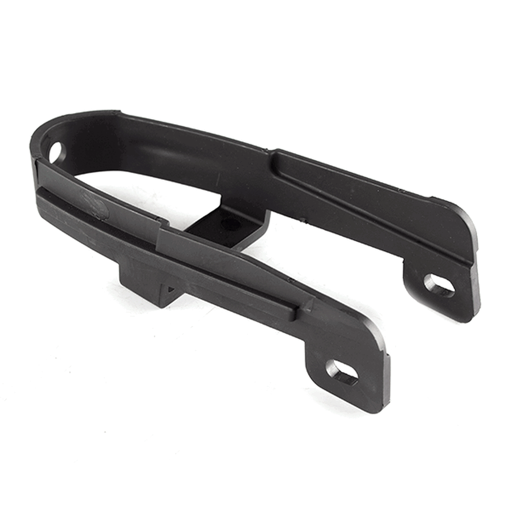 The rubber chain guide in a motorcycle is a component that directs and cushions the chain as it travels along the swingarm or frame. It reduces noise, minimizes chain wear, and prevents the chain from contacting and damaging other parts of the bike.