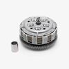 A clutch is a mechanical device that allows the output shaft to be disconnected from the rotating input shaft. The clutch's input shaft is typically attached to a motor, while the clutch's output shaft is connected to the mechanism that does the work.