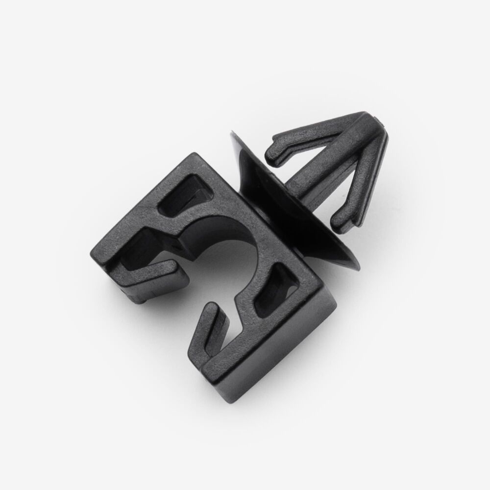 A clip in a motorcycle is a small fastening component used to secure or hold various parts in place, such as wiring, hoses, or panels. It ensures that components remain properly positioned and organized, contributing to the overall functionality and neatness of the bike.
