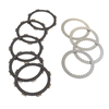 There are two types of clutch plates, the drive/friction plate and the driven/steel plate. The drive plate is the interface between the clutch basket and the pressure plate. The driven plate is the interface between the pressure plate and the clutch hub.