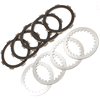 There are two types of clutch plates, the drive/friction plate and the driven/steel plate. The drive plate is the interface between the clutch basket and the pressure plate. The driven plate is the interface between the pressure plate and the clutch hub.