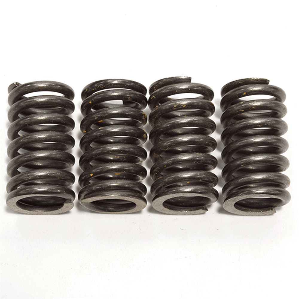 Clutch springs can be found in use on most motorcycle clutch assemblies. The function of these short coil springs is to continuously hold the friction and driven plates together through spring tension, preventing slippage except when the clutch lever is engaged.