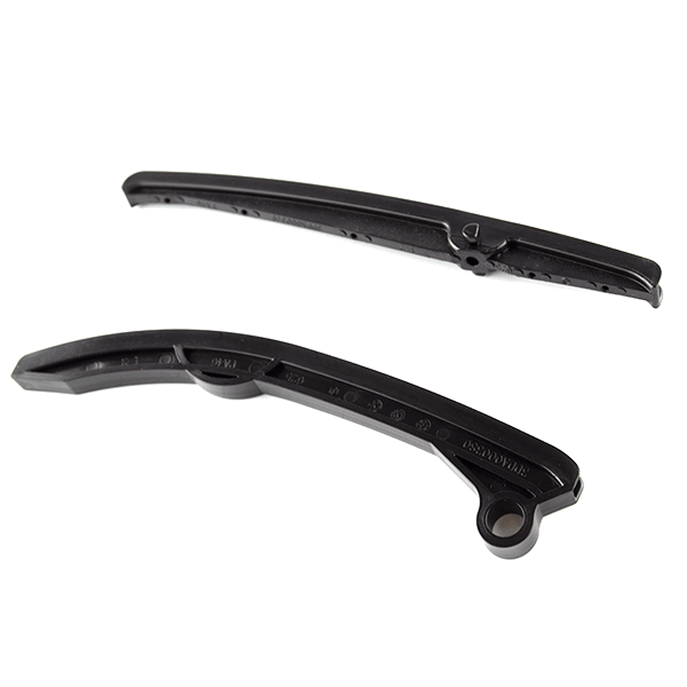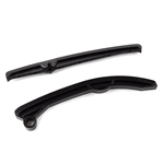 Cam chain guides in a motorcycle direct and support the cam chain as it moves between the camshaft and crankshaft. They help maintain proper alignment and tension of the chain, reducing noise and preventing wear or damage to both the chain and engine components.
