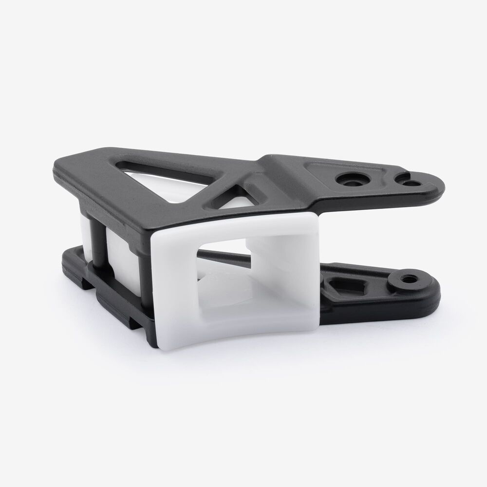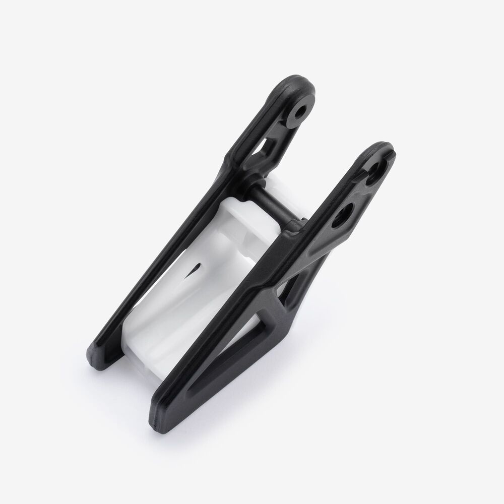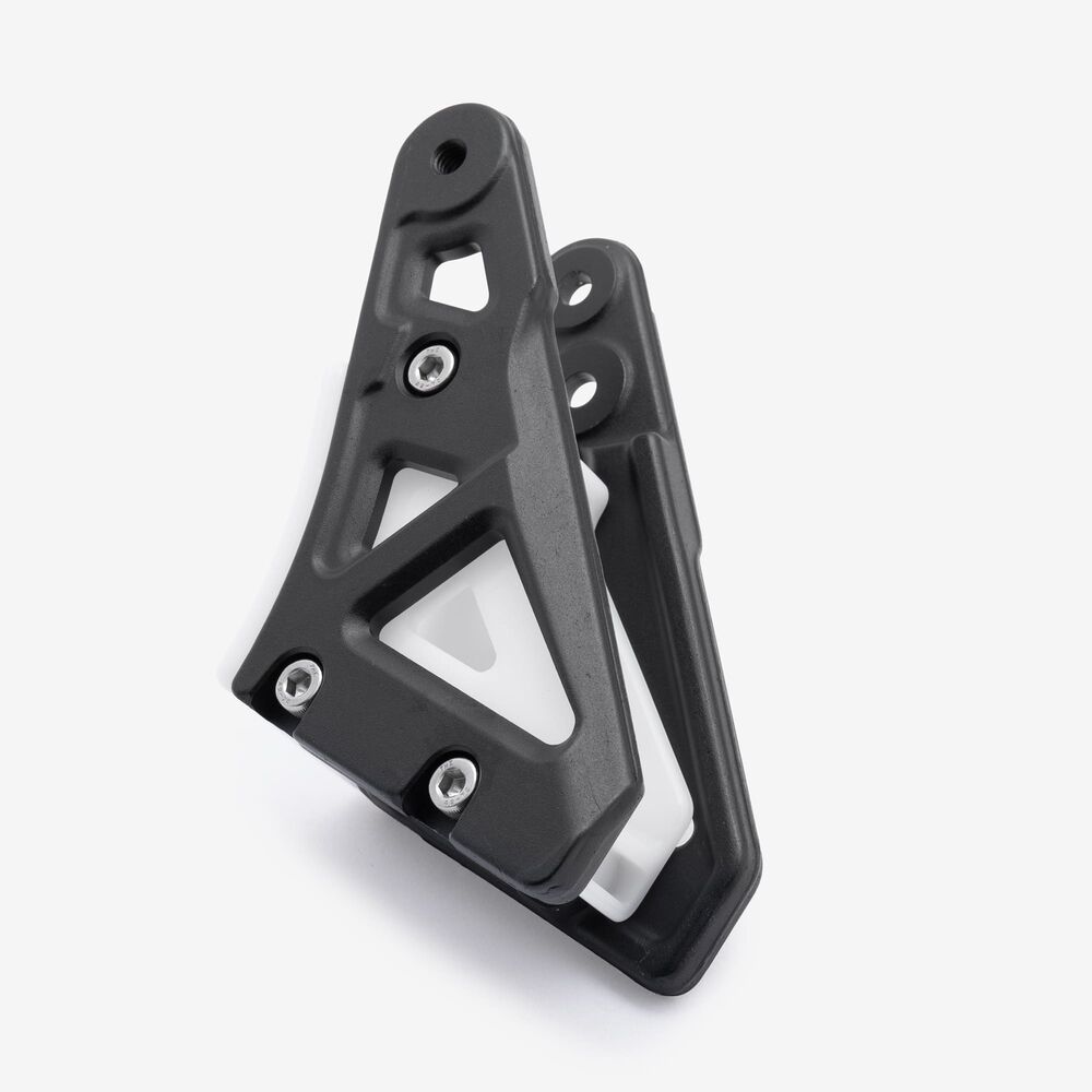 Cam chain guides in a motorcycle direct and support the cam chain as it moves between the camshaft and crankshaft. They help maintain proper alignment and tension of the chain, reducing noise and preventing wear or damage to both the chain and engine components.