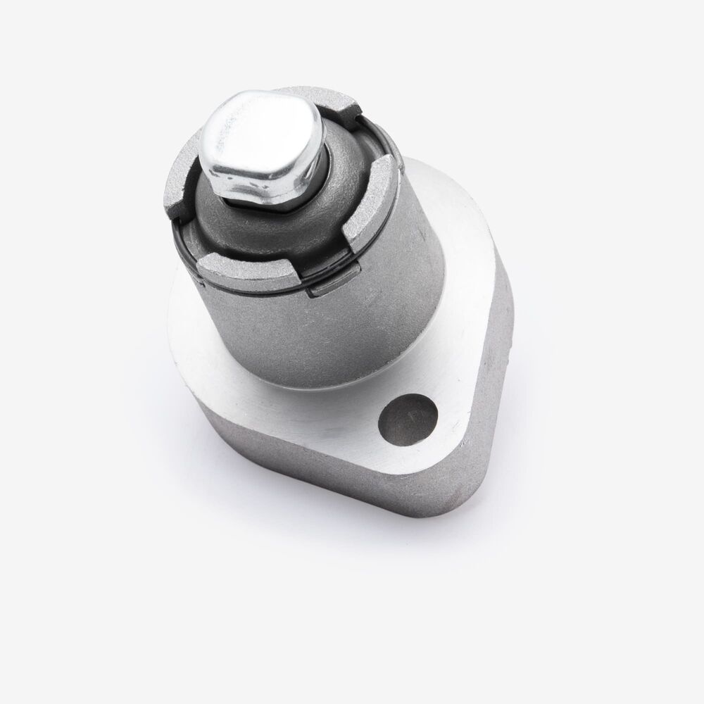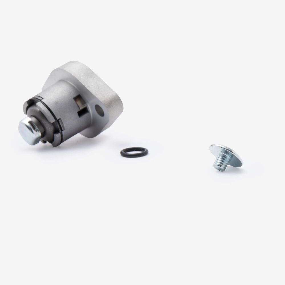 The cam chain tensioner in a motorcycle maintains the correct tension of the cam chain, which connects the camshaft to the crankshaft. By keeping the chain properly tensioned, it ensures accurate valve timing, reduces noise, and prevents premature wear or damage to the engine components.