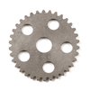 The camshaft sprocket in a motorcycle is a gear attached to the camshaft, which is driven by the timing chain. It ensures the precise timing of the camshaft's rotation, controlling the opening and closing of the engine's valves in synchronization with the piston's movement, crucial for efficient engine operation.