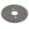 The camshaft sprocket in a motorcycle is a gear attached to the camshaft, which is driven by the timing chain. It ensures the precise timing of the camshaft's rotation, controlling the opening and closing of the engine's valves in synchronization with the piston's movement, crucial for efficient engine operation.