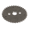 The camshaft sprocket in a motorcycle is a gear attached to the camshaft, which is driven by the timing chain. It ensures the precise timing of the camshaft's rotation, controlling the opening and closing of the engine's valves in synchronization with the piston's movement, crucial for efficient engine operation.