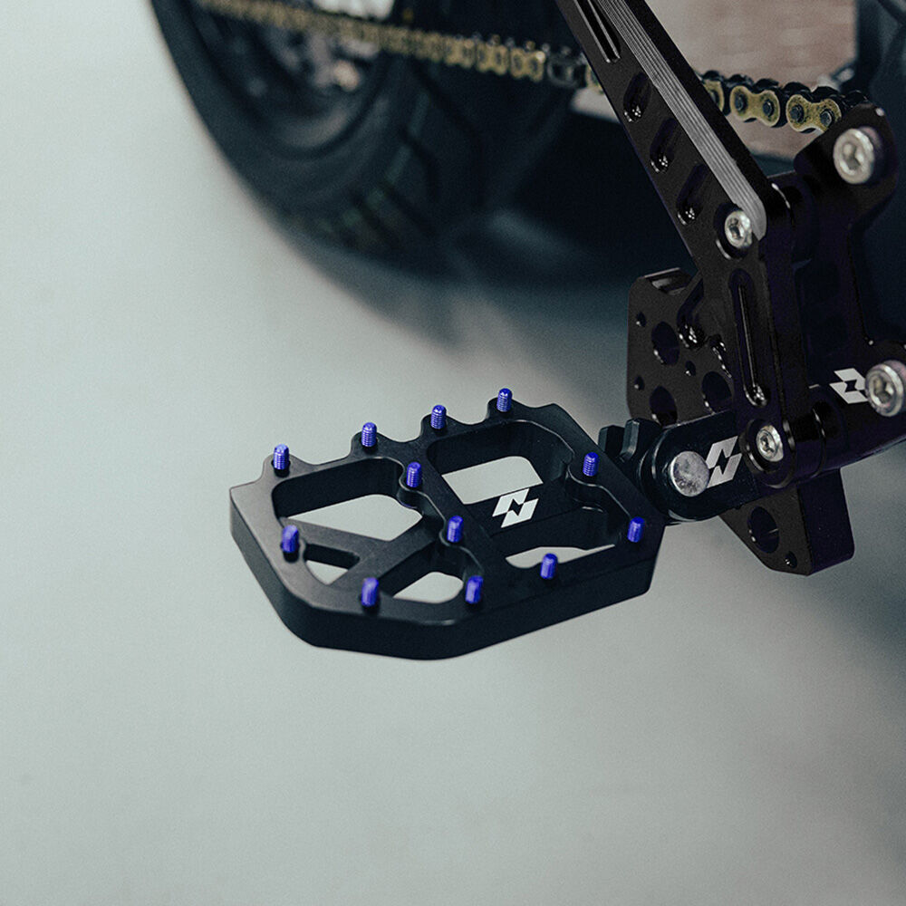 Upgrade your riding stance with our wide fit footpegs providing you with more stability control and comfort. Perfect for anyone riding out there for hours, racing or just simply wanting some cool upgraded pegs to match