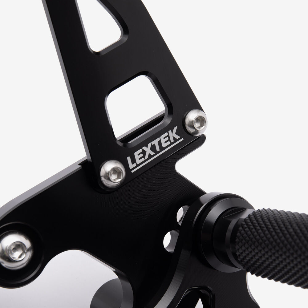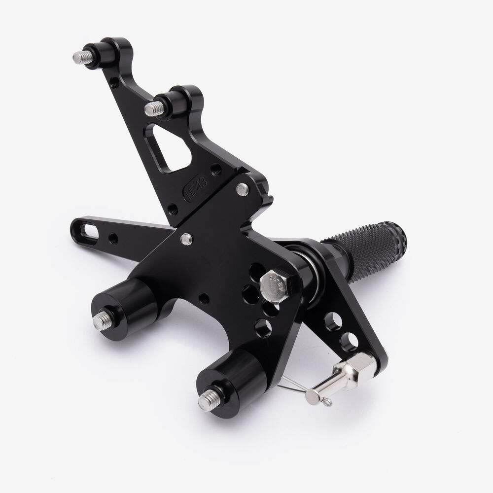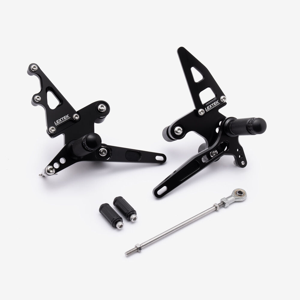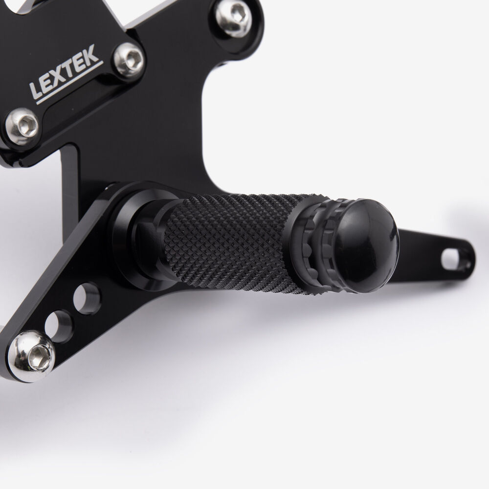 Rear sets in a motorcycle are aftermarket foot controls that replace the stock footpegs, providing adjustable positioning for improved rider ergonomics and performance. Commonly used in sport and racing motorcycles, they allow riders to achieve a more aggressive riding posture and enhance cornering and control.