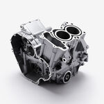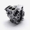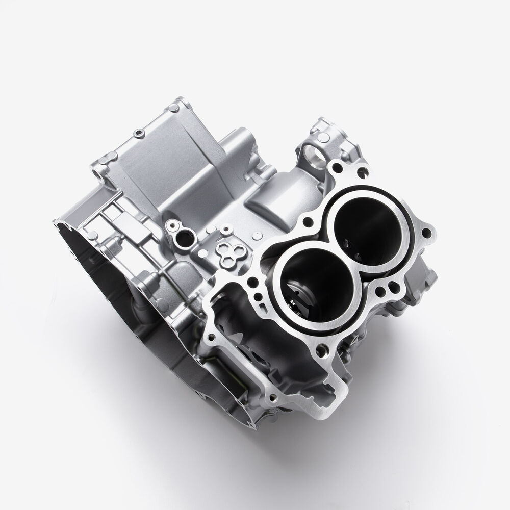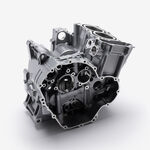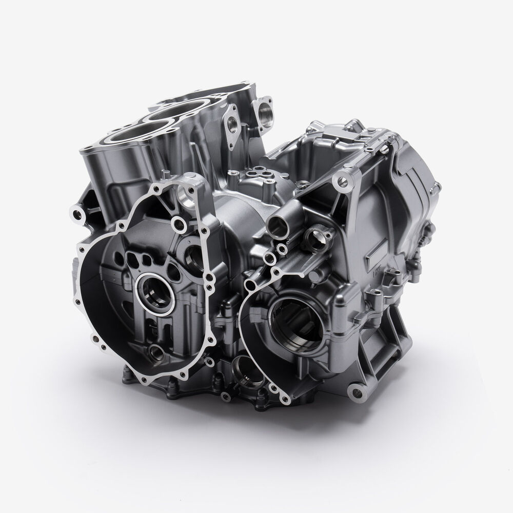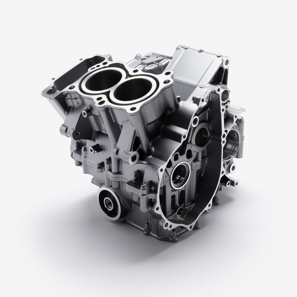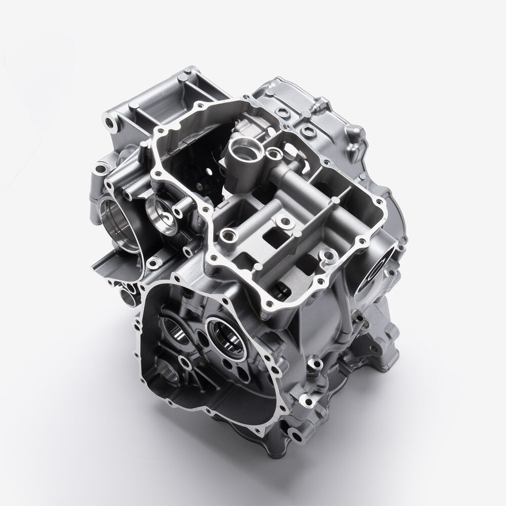 The crankcase in a motorcycle houses the engine's internal components on the side, including parts of the crankshaft, transmission, and oil pump. It provides structural support, protects these components, and ensures proper alignment and lubrication within the engine.