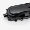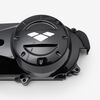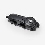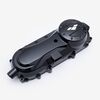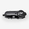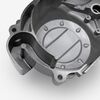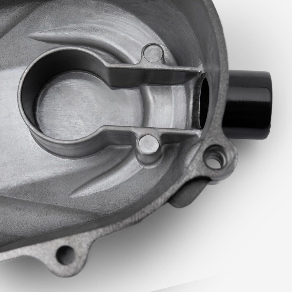 The crankcase in a motorcycle houses the engine's internal components on the side, including parts of the crankshaft, transmission, and oil pump. It provides structural support, protects these components, and ensures proper alignment and lubrication within the engine.