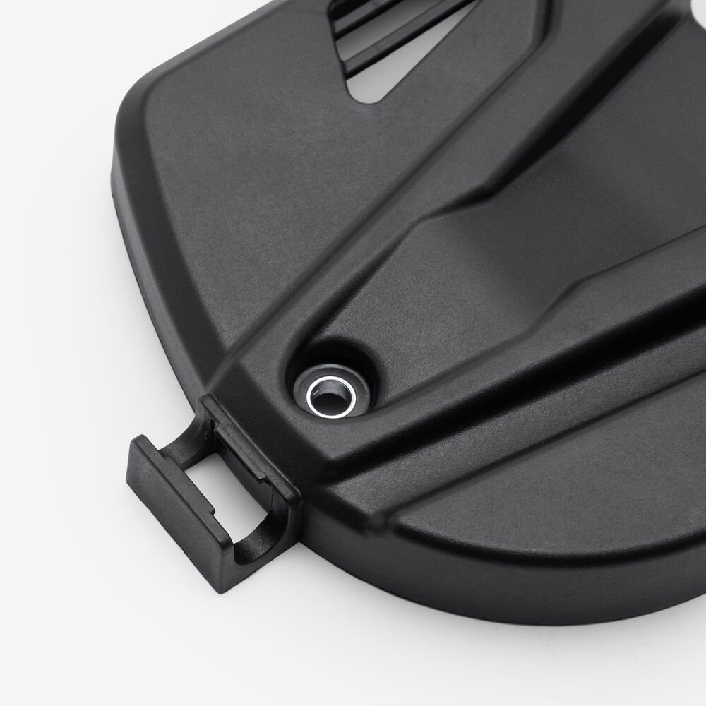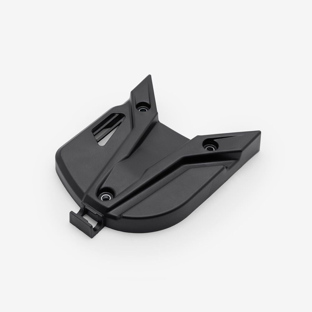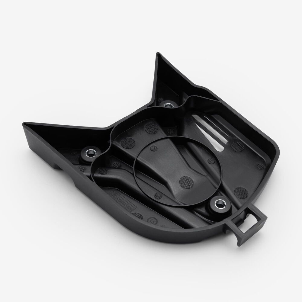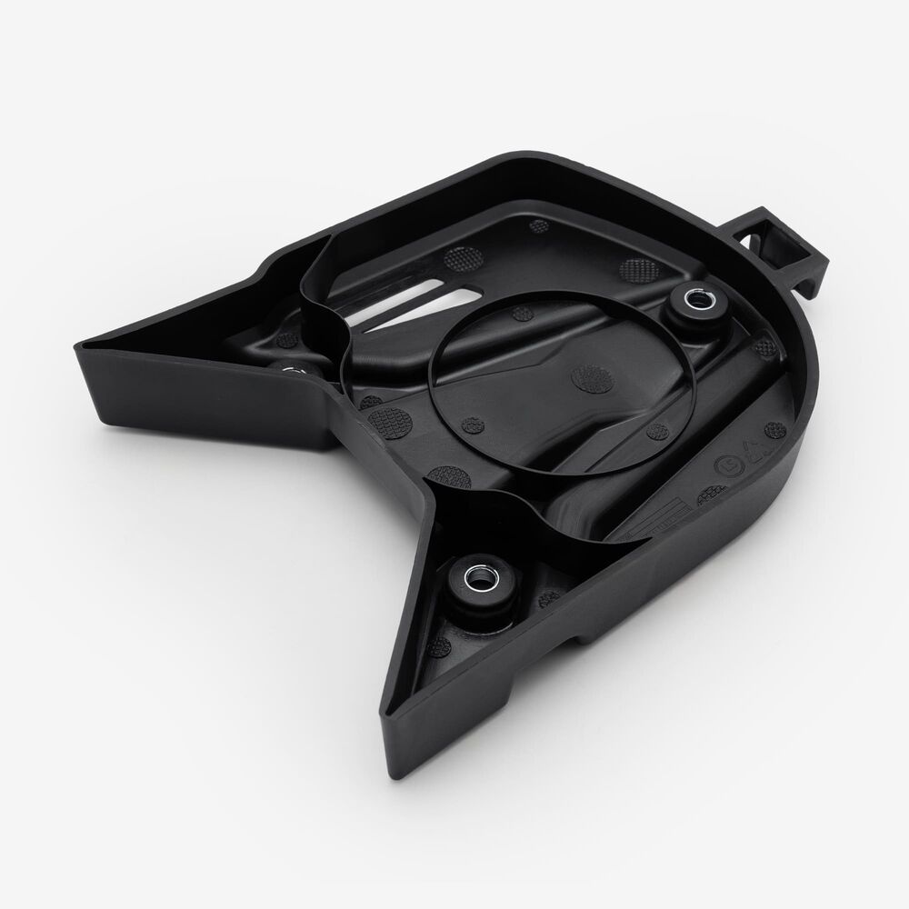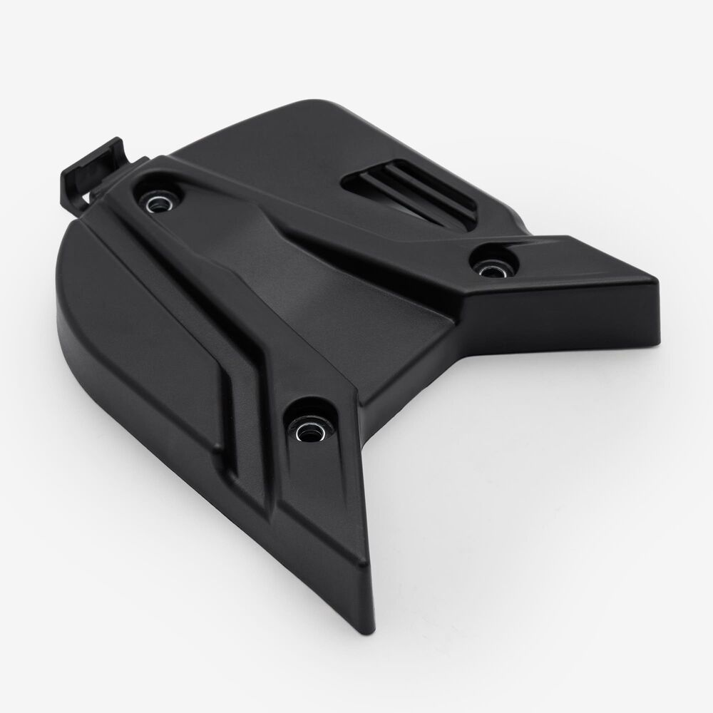 The crankcase in a motorcycle houses the engine's internal components on the side, including parts of the crankshaft, transmission, and oil pump. It provides structural support, protects these components, and ensures proper alignment and lubrication within the engine.