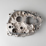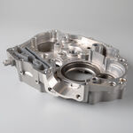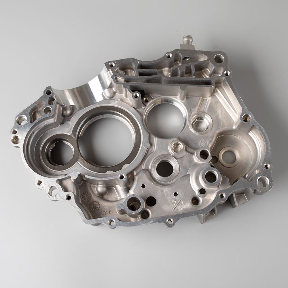 The crankcase in a motorcycle houses the engine's internal components on the side, including parts of the crankshaft, transmission, and oil pump. It provides structural support, protects these components, and ensures proper alignment and lubrication within the engine.