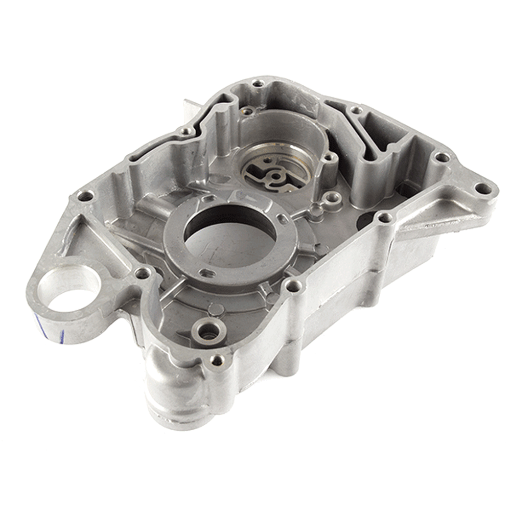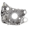 The crankcase in a motorcycle houses the engine's internal components on the side, including parts of the crankshaft, transmission, and oil pump. It provides structural support, protects these components, and ensures proper alignment and lubrication within the engine.