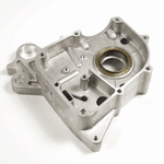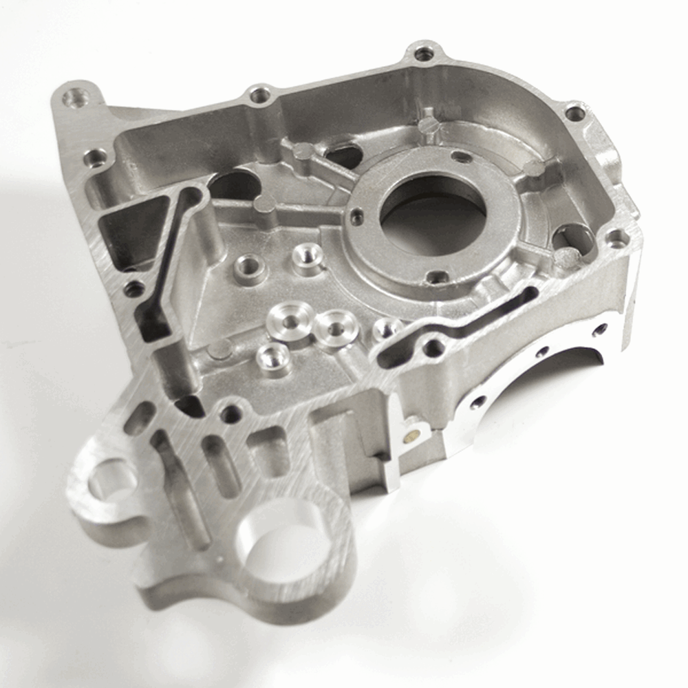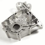 The crankcase in a motorcycle houses the engine's internal components on the side, including parts of the crankshaft, transmission, and oil pump. It provides structural support, protects these components, and ensures proper alignment and lubrication within the engine.