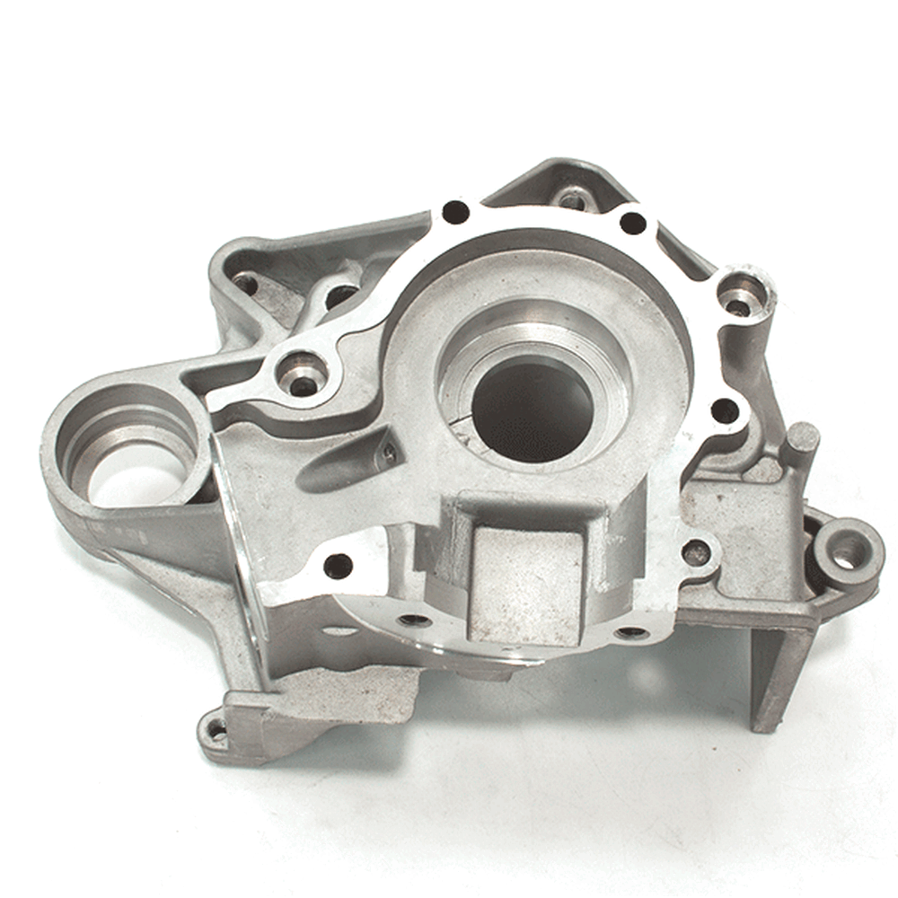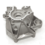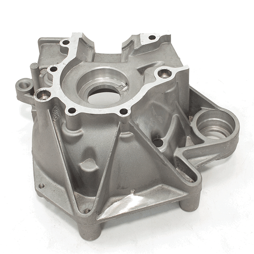 The crankcase in a motorcycle houses the engine's internal components on the side, including parts of the crankshaft, transmission, and oil pump. It provides structural support, protects these components, and ensures proper alignment and lubrication within the engine.