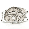 The crankcase in a motorcycle houses the engine's internal components on the side, including parts of the crankshaft, transmission, and oil pump. It provides structural support, protects these components, and ensures proper alignment and lubrication within the engine.