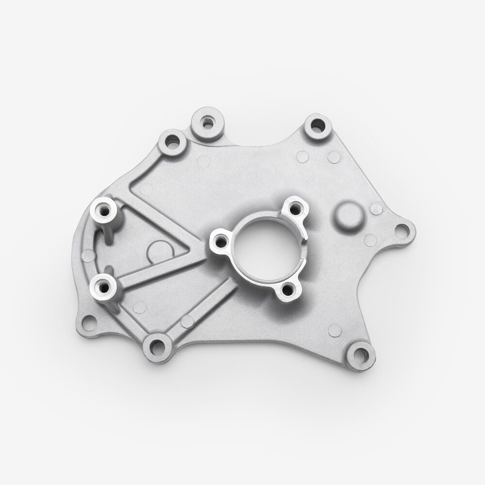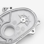 The crankcase in a motorcycle houses the engine's internal components on the side, including parts of the crankshaft, transmission, and oil pump. It provides structural support, protects these components, and ensures proper alignment and lubrication within the engine.