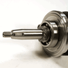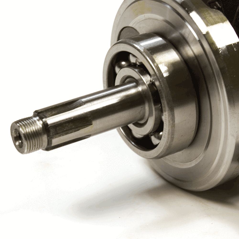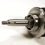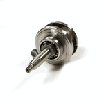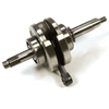 The crankshaft in a motorcycle converts the linear motion of the pistons into rotational motion, which powers the transmission and ultimately drives the rear wheel. It is a crucial component for engine function, ensuring smooth and efficient power delivery by linking the piston movement to the engine's output.