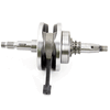 The crankshaft in a motorcycle converts the linear motion of the pistons into rotational motion, which powers the transmission and ultimately drives the rear wheel. It is a crucial component for engine function, ensuring smooth and efficient power delivery by linking the piston movement to the engine's output.