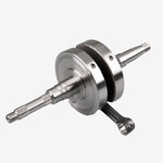 The crankshaft in a motorcycle converts the linear motion of the pistons into rotational motion, which powers the transmission and ultimately drives the rear wheel. It is a crucial component for engine function, ensuring smooth and efficient power delivery by linking the piston movement to the engine's output.