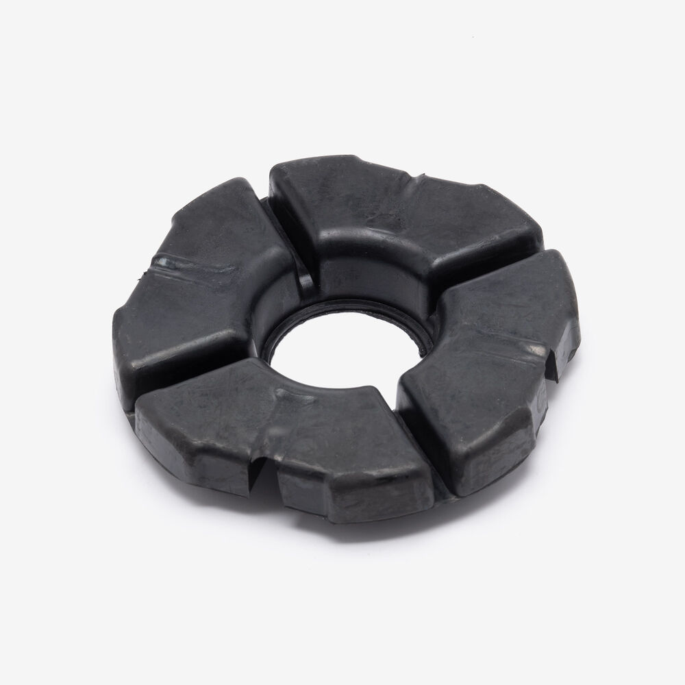 The cush drive rubber in a motorcycle absorbs and dampens shock loads transmitted from the rear wheel to the gearbox, reducing vibration and stress on the drivetrain. This helps enhance ride comfort and prolongs the lifespan of the transmission components.