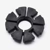 The cush drive rubber in a motorcycle absorbs and dampens shock loads transmitted from the rear wheel to the gearbox, reducing vibration and stress on the drivetrain. This helps enhance ride comfort and prolongs the lifespan of the transmission components.