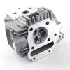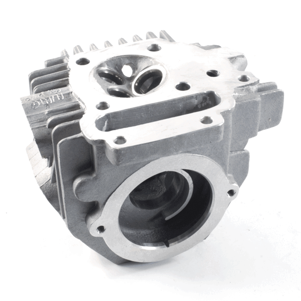 The cylinder head in a motorcycle is a critical engine component that sits atop the cylinder block, housing the intake and exhaust valves, camshaft, and other vital elements. It facilitates the intake of air-fuel mixture and the expulsion of exhaust gases, while also sealing the combustion chamber to ensure efficient engine performance and power generation.
