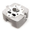 The cylinder head in a motorcycle is a critical engine component that sits atop the cylinder block, housing the intake and exhaust valves, camshaft, and other vital elements. It facilitates the intake of air-fuel mixture and the expulsion of exhaust gases, while also sealing the combustion chamber to ensure efficient engine performance and power generation.