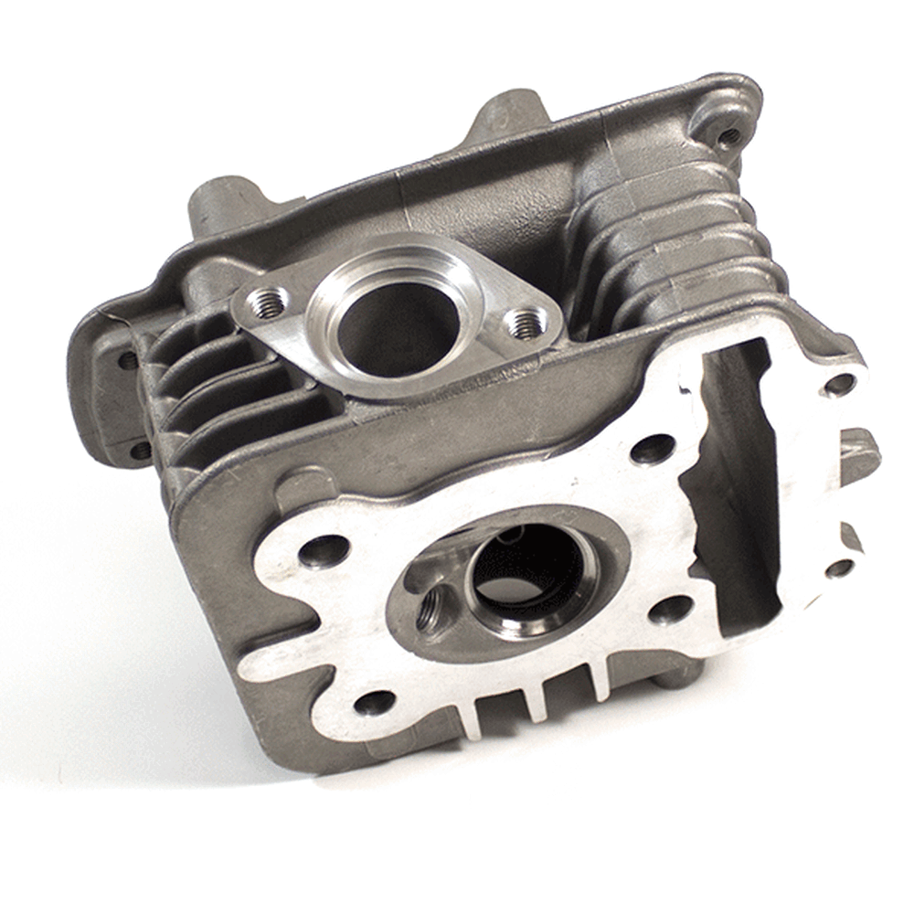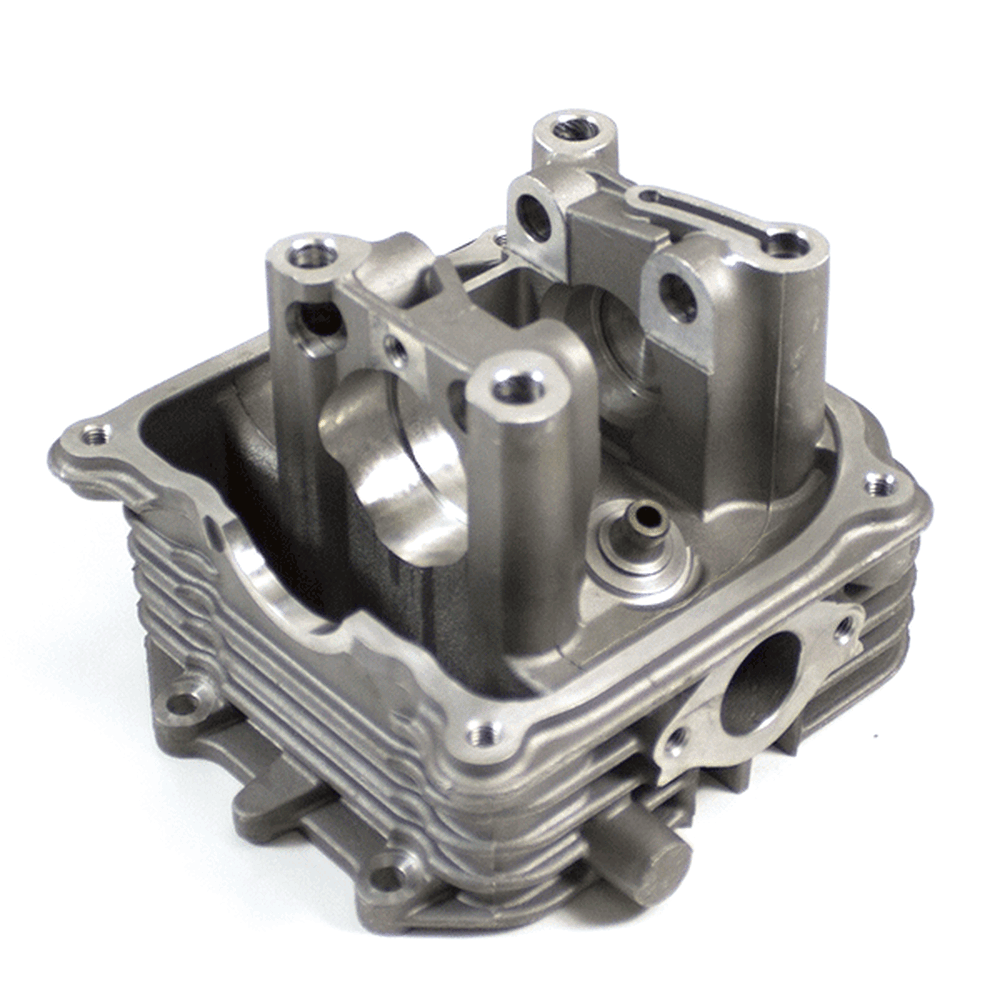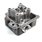 The cylinder head in a motorcycle is a critical engine component that sits atop the cylinder block, housing the intake and exhaust valves, camshaft, and other vital elements. It facilitates the intake of air-fuel mixture and the expulsion of exhaust gases, while also sealing the combustion chamber to ensure efficient engine performance and power generation.