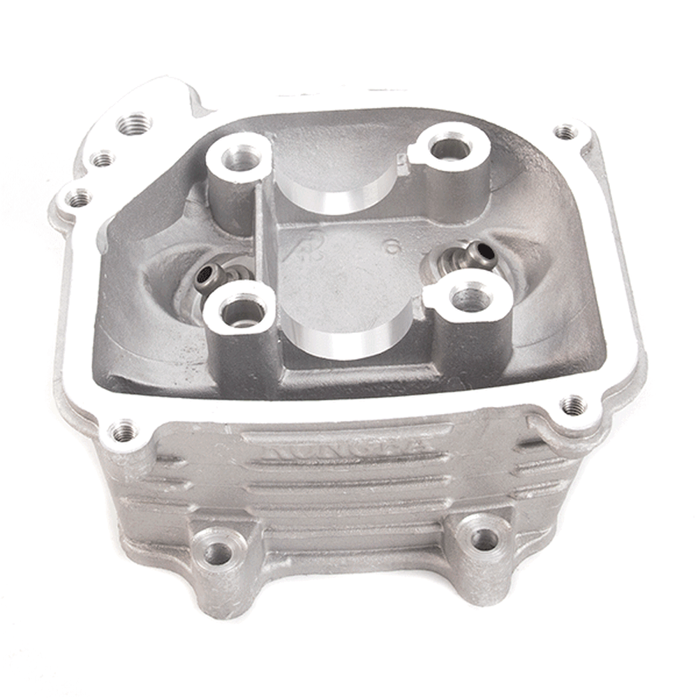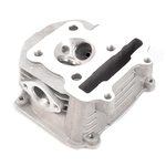 The cylinder head in a motorcycle is a critical engine component that sits atop the cylinder block, housing the intake and exhaust valves, camshaft, and other vital elements. It facilitates the intake of air-fuel mixture and the expulsion of exhaust gases, while also sealing the combustion chamber to ensure efficient engine performance and power generation.