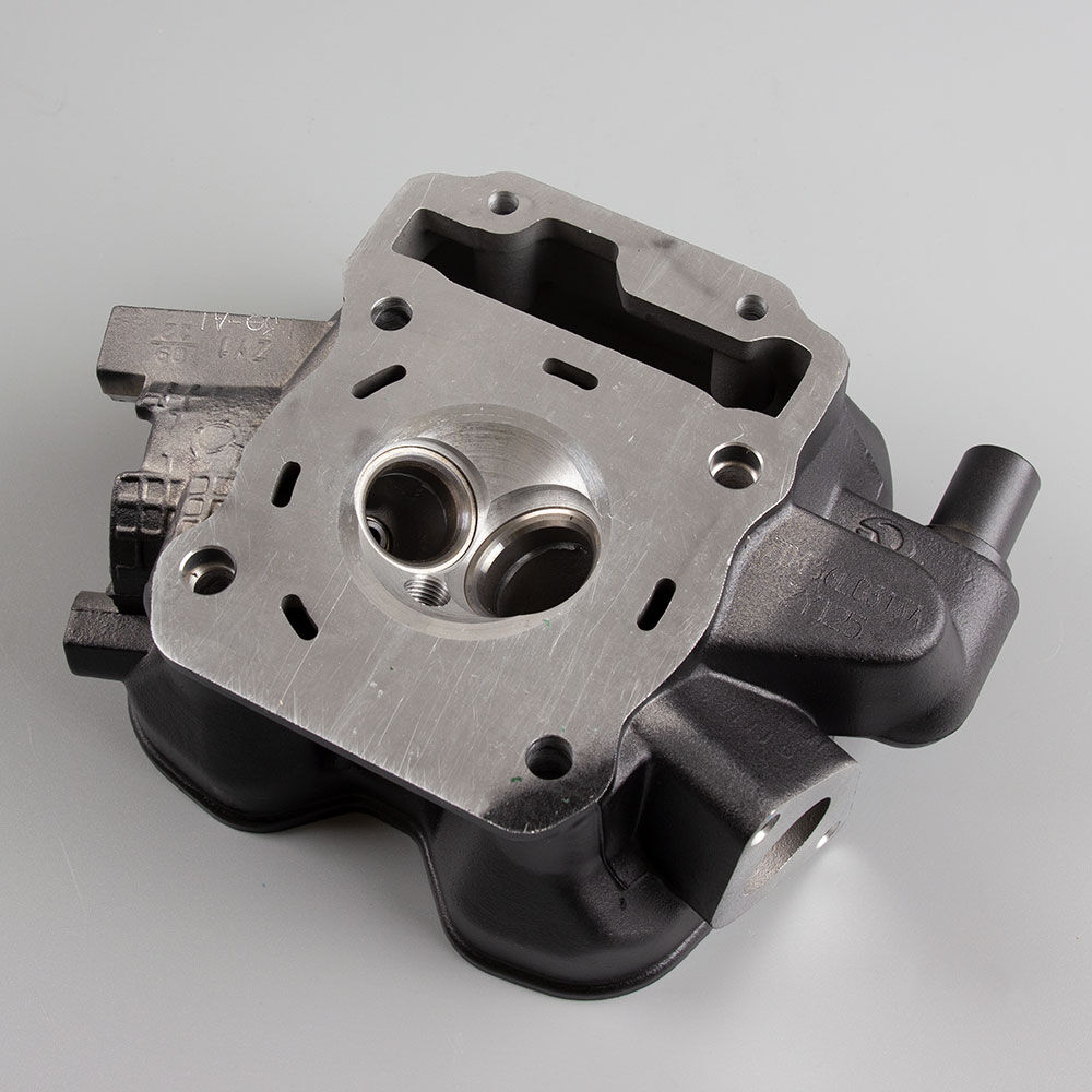 The cylinder head in a motorcycle is a critical engine component that sits atop the cylinder block, housing the intake and exhaust valves, camshaft, and other vital elements. It facilitates the intake of air-fuel mixture and the expulsion of exhaust gases, while also sealing the combustion chamber to ensure efficient engine performance and power generation.