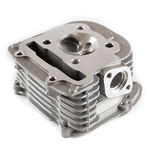 The cylinder head in a motorcycle is a critical engine component that sits atop the cylinder block, housing the intake and exhaust valves, camshaft, and other vital elements. It facilitates the intake of air-fuel mixture and the expulsion of exhaust gases, while also sealing the combustion chamber to ensure efficient engine performance and power generation.