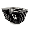 The cylinder head in a motorcycle is a critical engine component that sits atop the cylinder block, housing the intake and exhaust valves, camshaft, and other vital elements. It facilitates the intake of air-fuel mixture and the expulsion of exhaust gases, while also sealing the combustion chamber to ensure efficient engine performance and power generation.