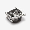 The cylinder head in a motorcycle is a critical engine component that sits atop the cylinder block, housing the intake and exhaust valves, camshaft, and other vital elements. It facilitates the intake of air-fuel mixture and the expulsion of exhaust gases, while also sealing the combustion chamber to ensure efficient engine performance and power generation.