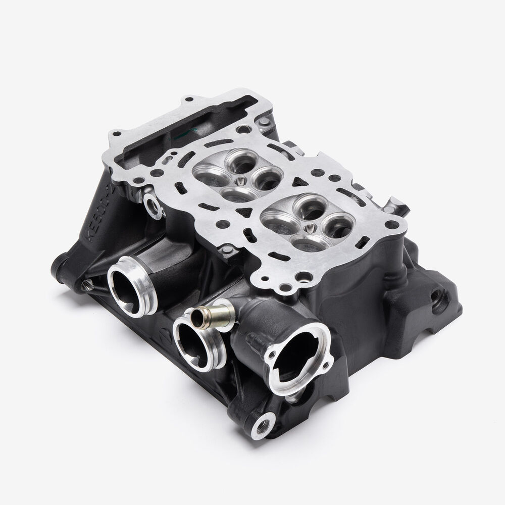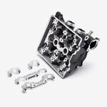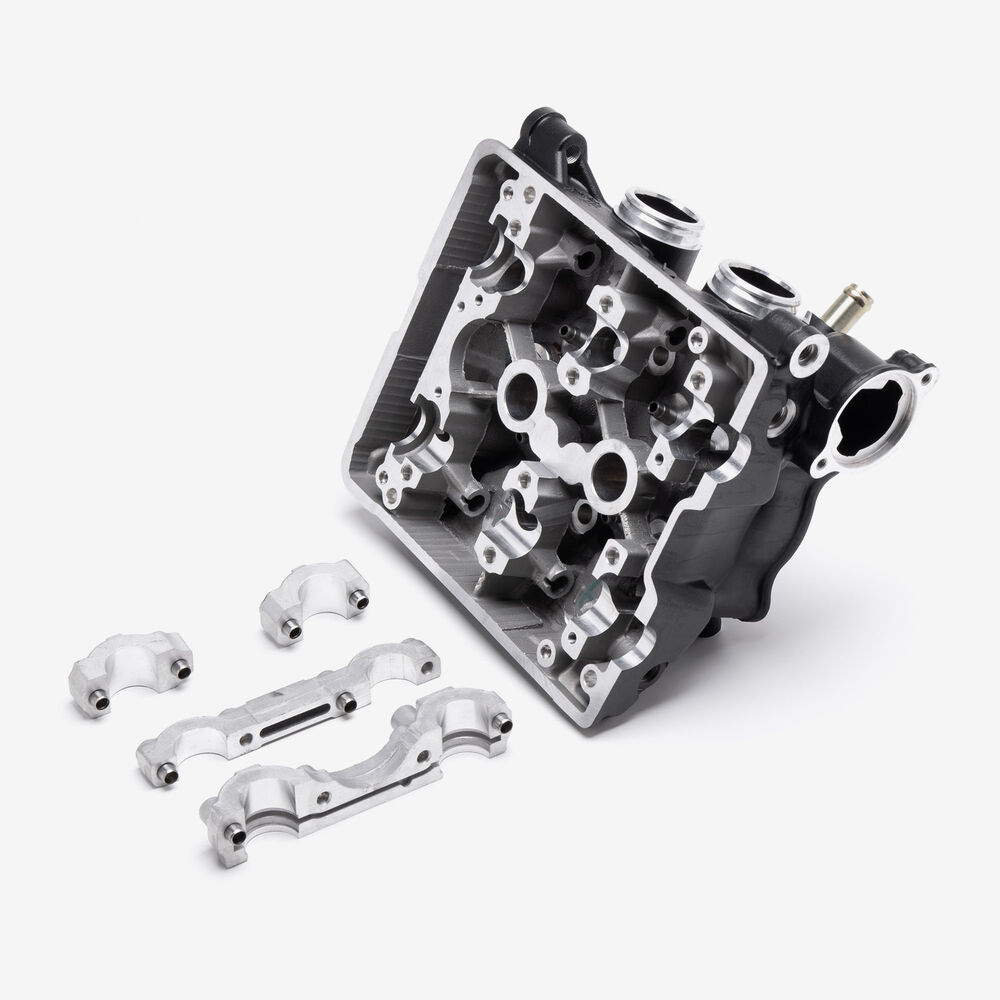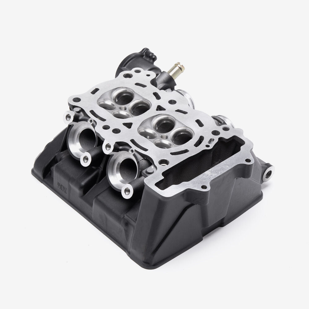 The cylinder head in a motorcycle is a critical engine component that sits atop the cylinder block, housing the intake and exhaust valves, camshaft, and other vital elements. It facilitates the intake of air-fuel mixture and the expulsion of exhaust gases, while also sealing the combustion chamber to ensure efficient engine performance and power generation.