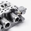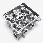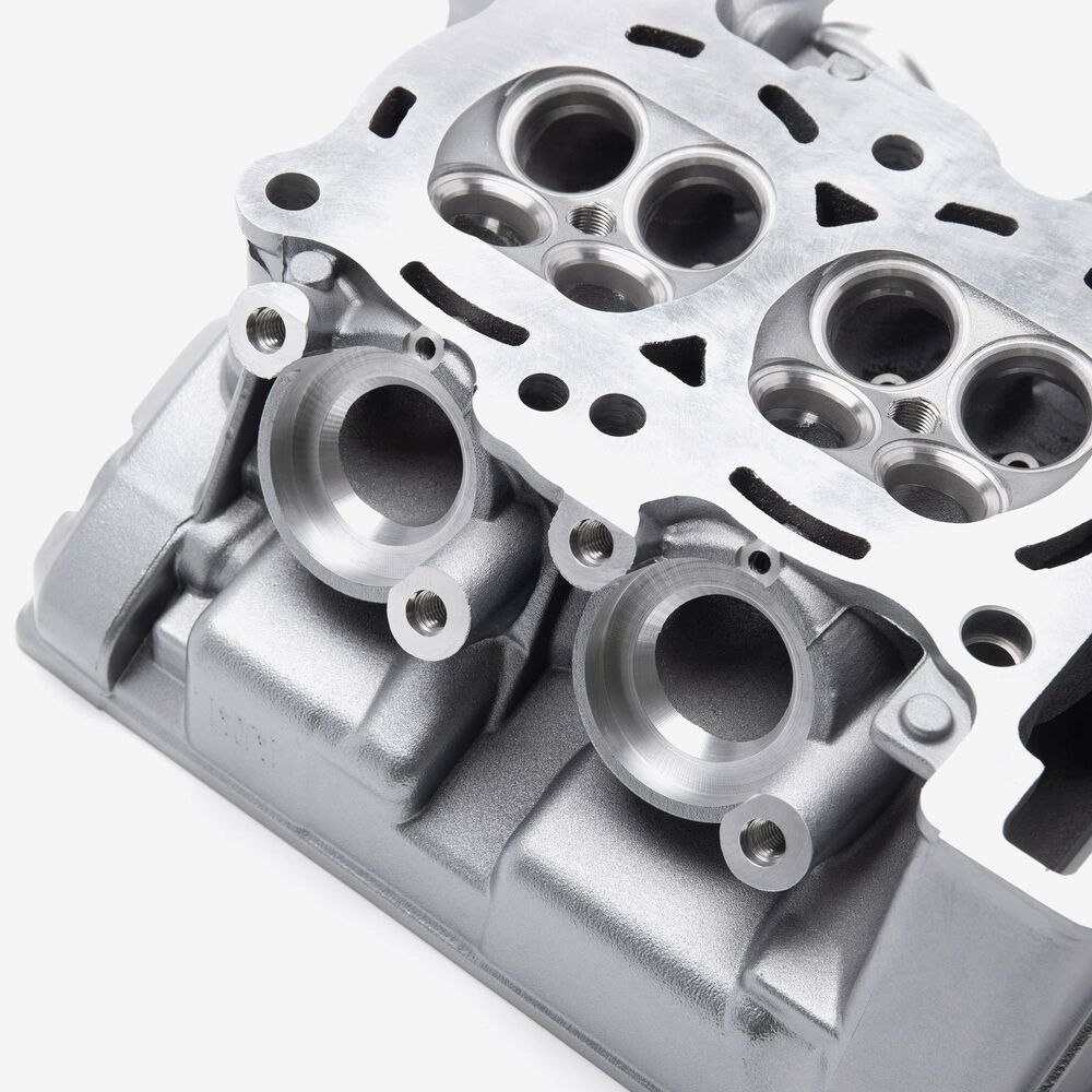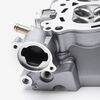 The cylinder head in a motorcycle is a critical engine component that sits atop the cylinder block, housing the intake and exhaust valves, camshaft, and other vital elements. It facilitates the intake of air-fuel mixture and the expulsion of exhaust gases, while also sealing the combustion chamber to ensure efficient engine performance and power generation.