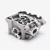 The cylinder head in a motorcycle is a critical engine component that sits atop the cylinder block, housing the intake and exhaust valves, camshaft, and other vital elements. It facilitates the intake of air-fuel mixture and the expulsion of exhaust gases, while also sealing the combustion chamber to ensure efficient engine performance and power generation.