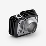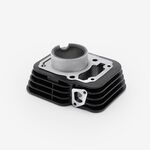 The cylinder head in a motorcycle is a critical engine component that sits atop the cylinder block, housing the intake and exhaust valves, camshaft, and other vital elements. It facilitates the intake of air-fuel mixture and the expulsion of exhaust gases, while also sealing the combustion chamber to ensure efficient engine performance and power generation.